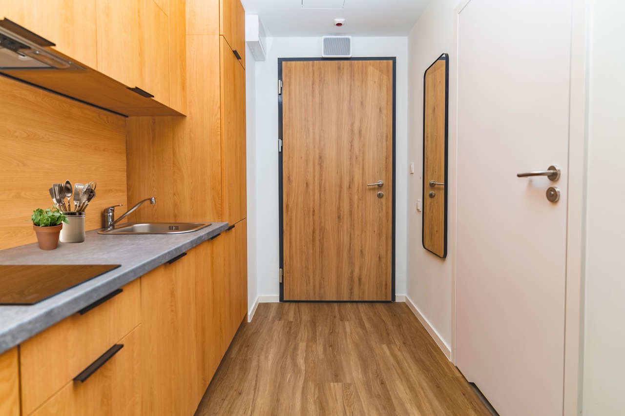 Nasze apartamenty są wyposażone we wszystko, czego potrzebujesz, aby poczuć się jak w domu i są przeznaczone dla dwóch osób. Znajduje się w nich rozkładane łóżko o szerokości 140 cm, stół i krzesła, łazienka z pralką, dużo miejsca do przechowywania oraz kuchnia wyposażona w lodówkę, płyty kuchenne, zlewozmywak, kuchenkę mikrofalową i zmywarkę.