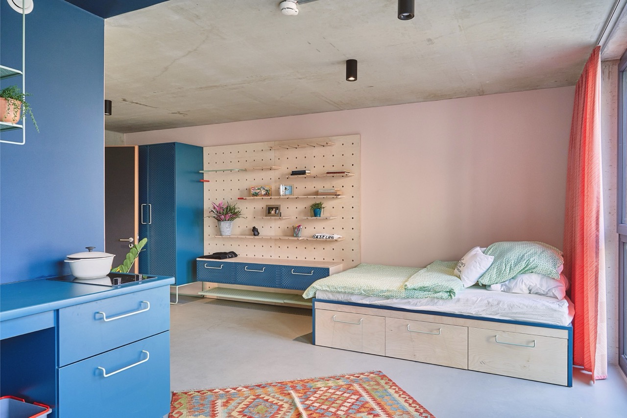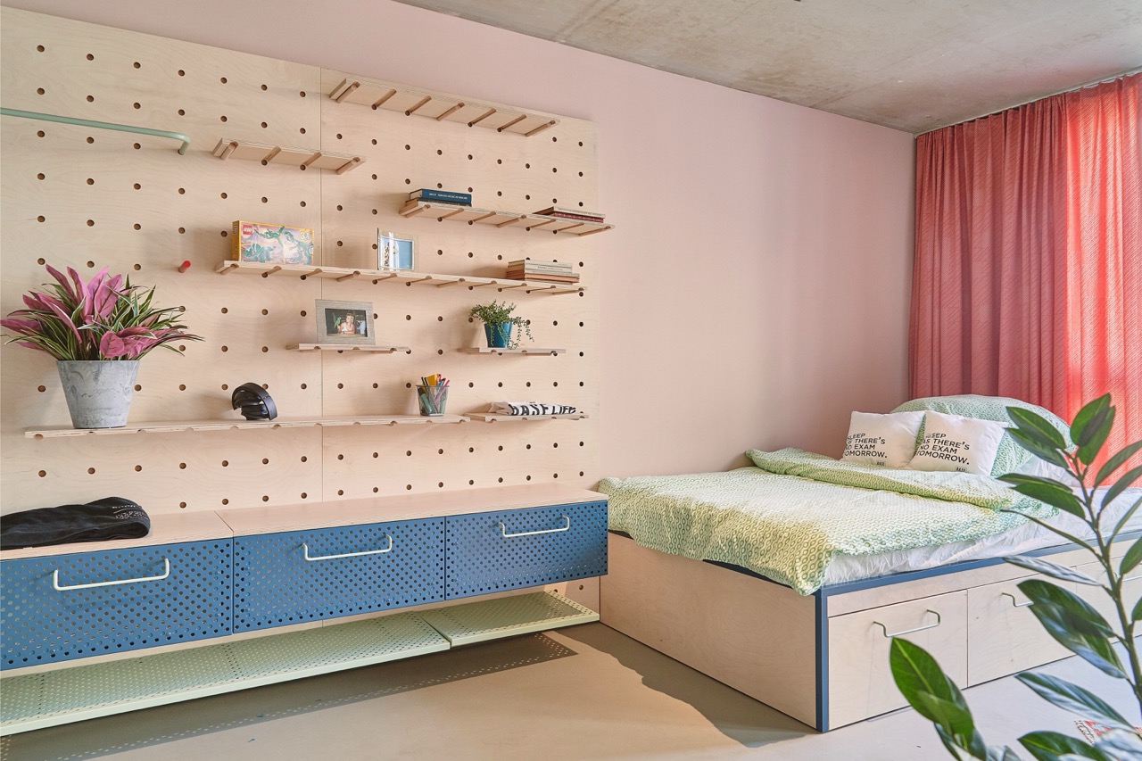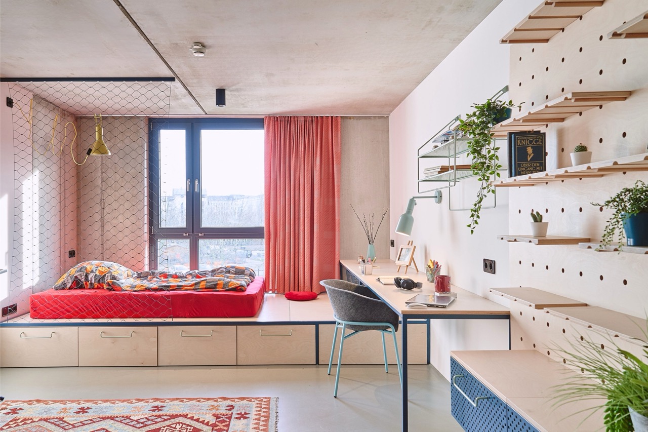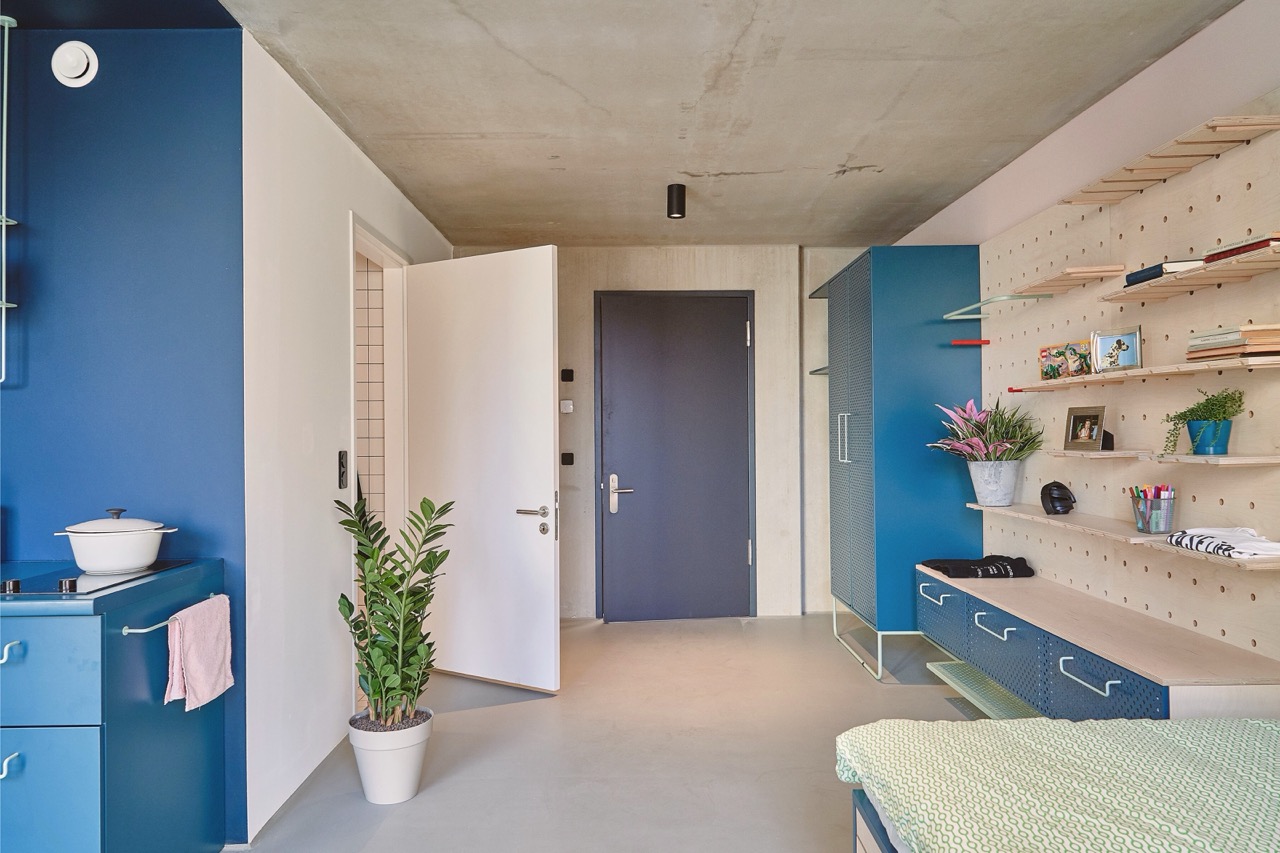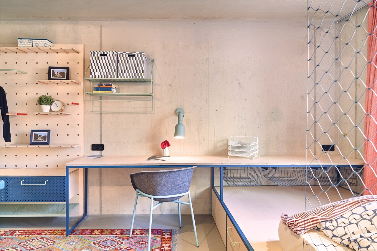 These apartments are equipped with everything you need to feel at home, including a single bed, a workspace, plenty of storage and an ensuite bathroom. The rent includes all utilities such as electricity, heating and water. There are no separate bills or unpleasant surprises later on. You’ll have full access to all our shared facilities, including WIFI, kitchen, co-working spaces, gym, laundry, cinema, postboxes and chill-out zones.