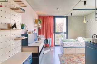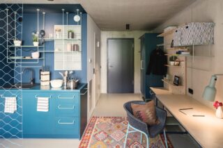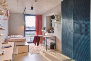 These apartments are equipped with everything you need to feel at home, including a single bed, a workspace, plenty of storage, an ensuite bathroom and private kitchen equipped with a fridge, sink and hob.The rent includes all utilities such as electricity, heating and water. There are no separate bills or unpleasant surprises later on. You’ll have full access to all our shared facilities, including WIFI, co-working spaces, gym, laundry, cinema, postboxes and chill-out zones.