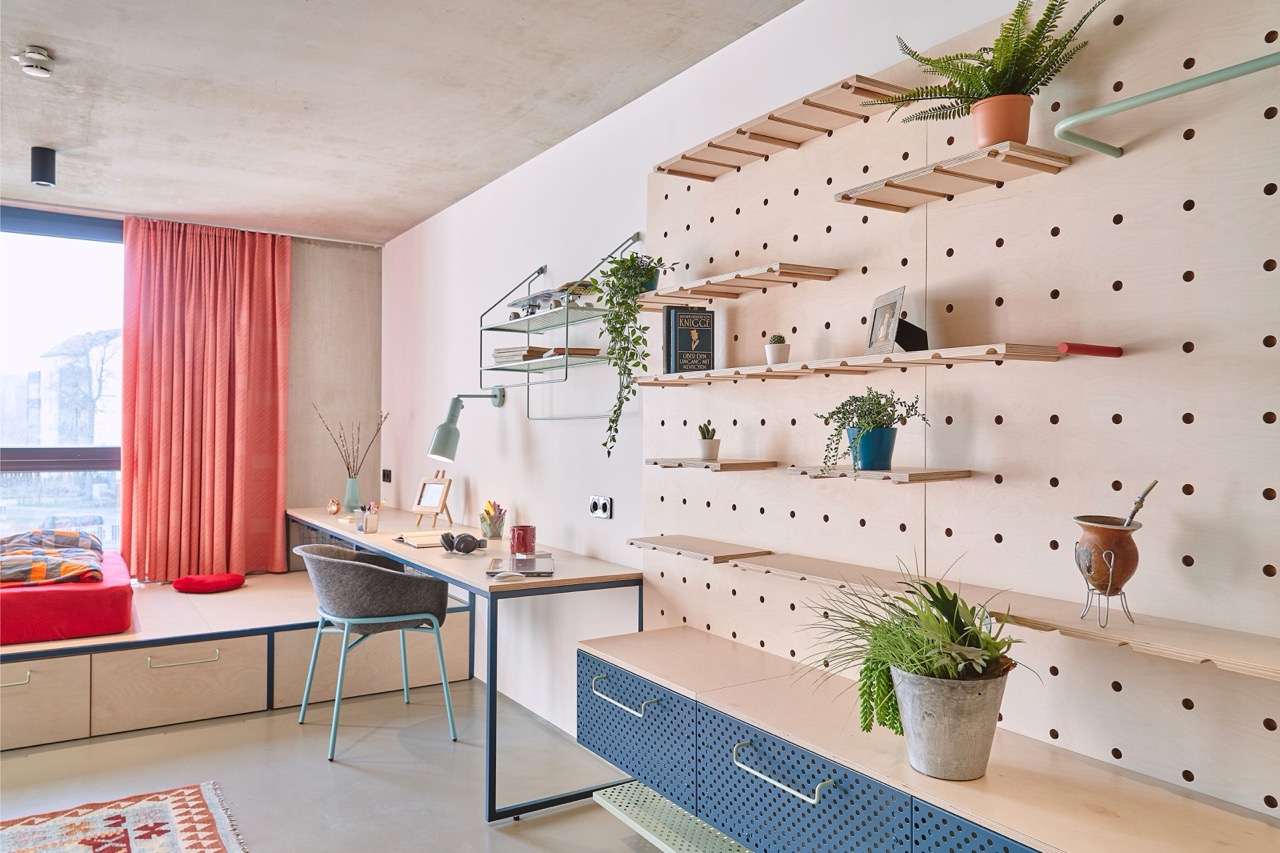 These apartments are equipped with everything you need to feel at home, including a double bed, a workspace, plenty of storage, an ensuite bathroom and private kitchen equipped with a fridge, sink and hob.The rent includes all utilities such as electricity, heating and water. There are no separate bills or unpleasant surprises later on. You’ll have full access to all our shared facilities, including WIFI, co-working spaces, gym, laundry, cinema, postboxes and chill-out zones.
