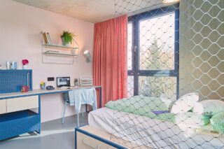 These apartments are equipped with everything you need to feel at home and are perfect for people with reduced mobility. They include a single bed, a workspace, plenty of storage, an ensuite bathroom and private kitchen equipped with a fridge, sink and hob. The rent includes all utilities such as electricity, heating and water. There are no separate bills or unpleasant surprises later on. You’ll have full access to all our shared facilities, including WIFI, co-working spaces, gym, laundry, cinema, postboxes and chill-out zones.