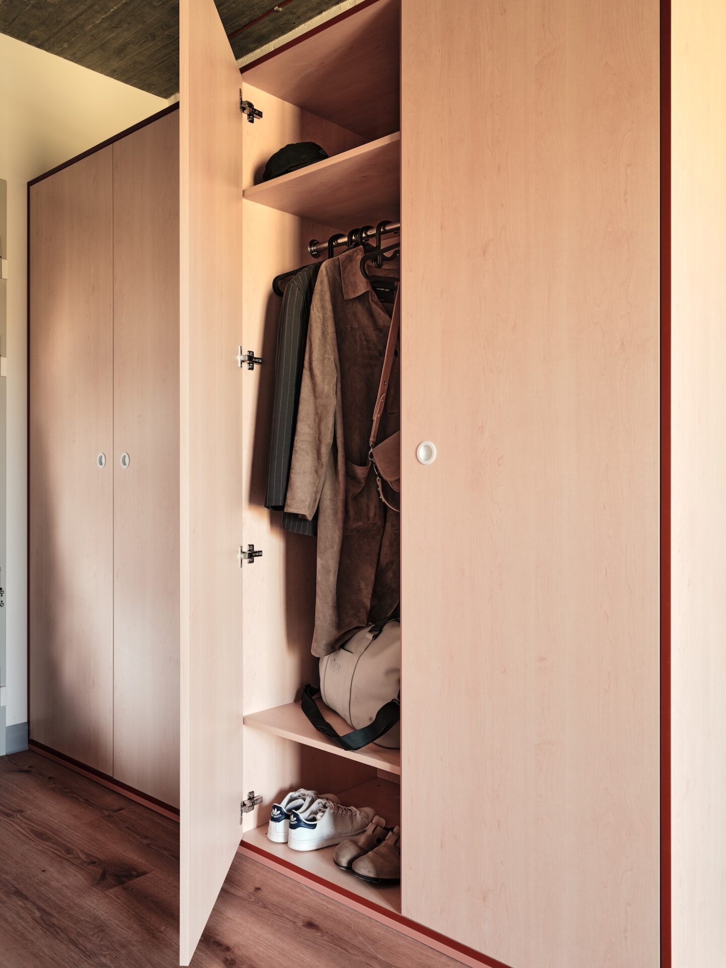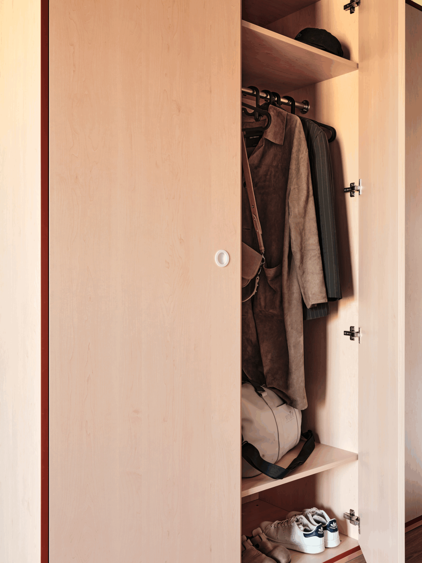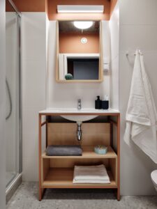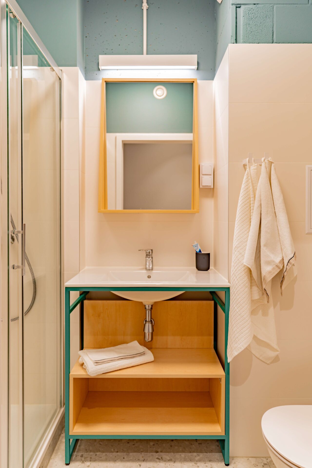 These apartments in our student housing in Warsaw are equipped with everything you need to feel at home, including a 120cm bed, a workspace, plenty of storage, an ensuite bathroom and kitchen equipped with a fridge, microwave, sink and hob.