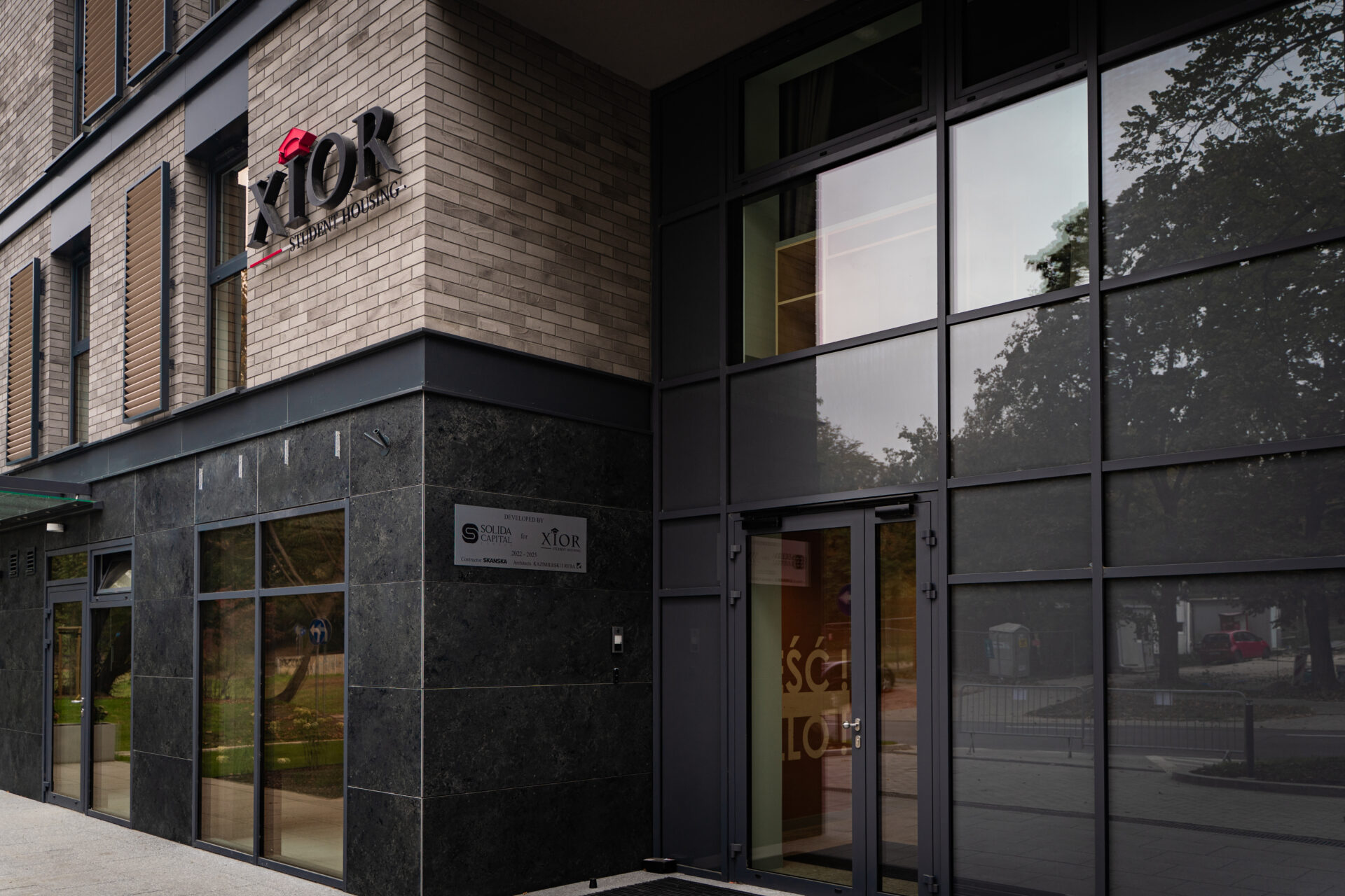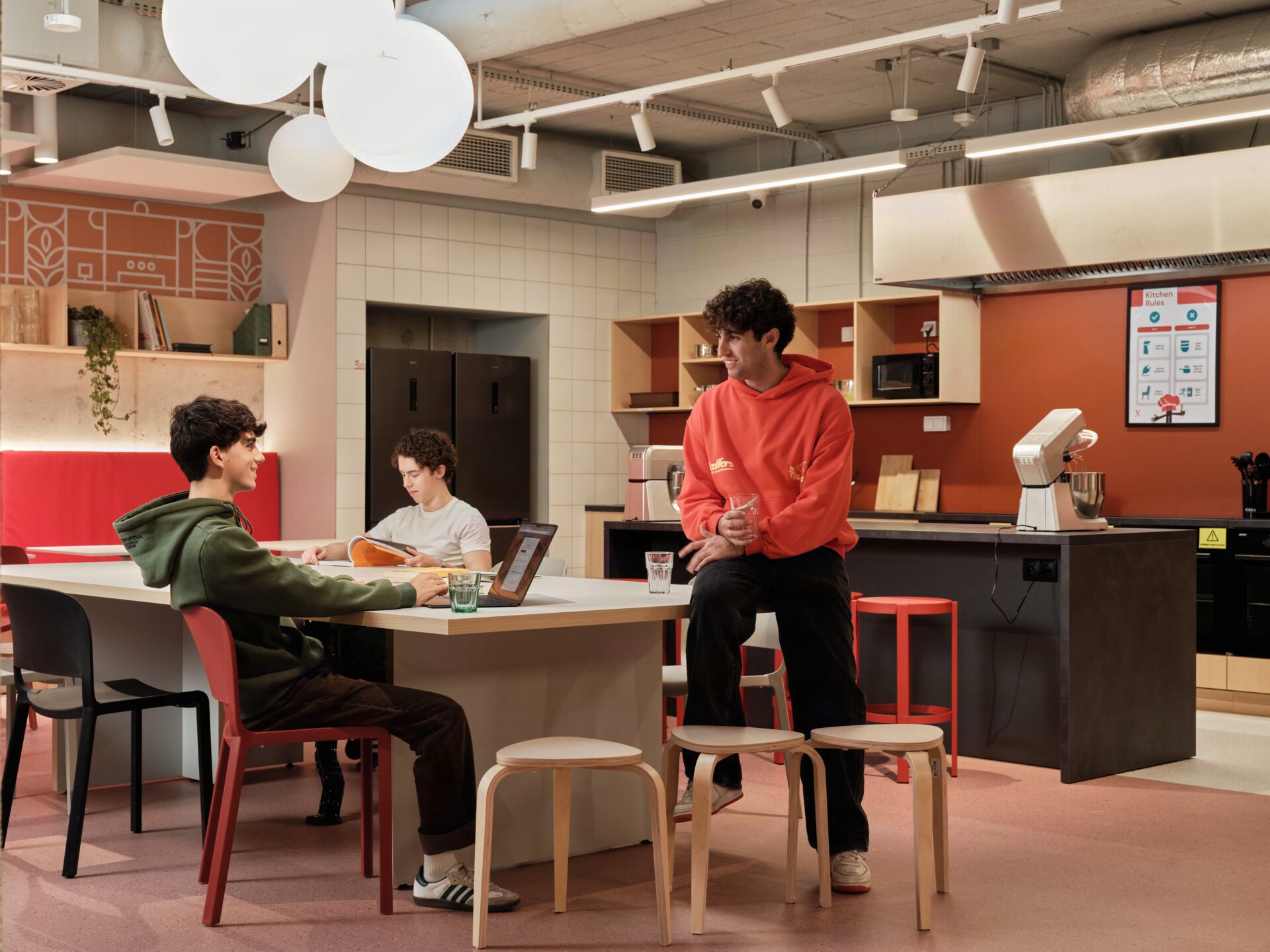 These apartments in our student housing in Warsaw are equipped with everything you need to feel at home, including a 120cm bed, a workspace, plenty of storage, an ensuite bathroom and kitchen equipped with a fridge, microwave, sink and hob.