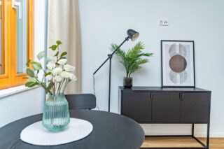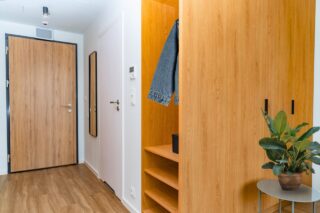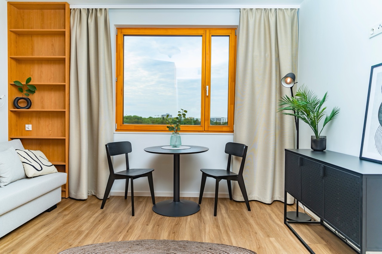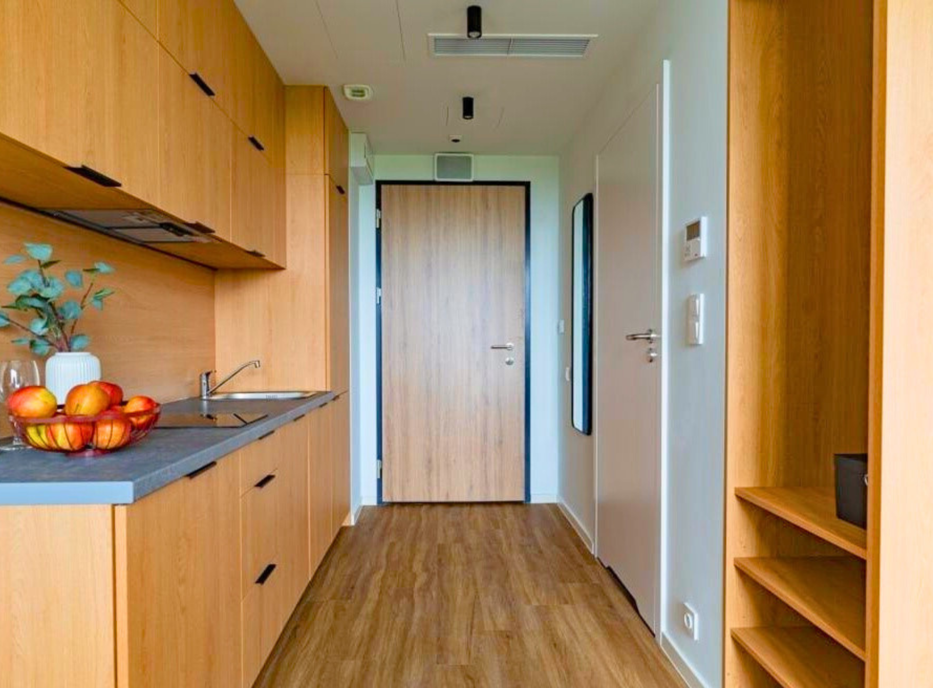 Our apartments are equipped with everything you need to feel at home and are suitable for double occupancy. They include a pull out 140cm bed, dining table and chairs, an ensuite bathroom with a washing machine , plenty of storage and a kitchen equipped with a fridge, cooking plates, sink, microwave and dishwasher.
